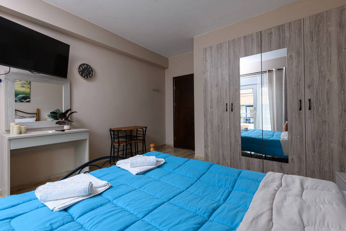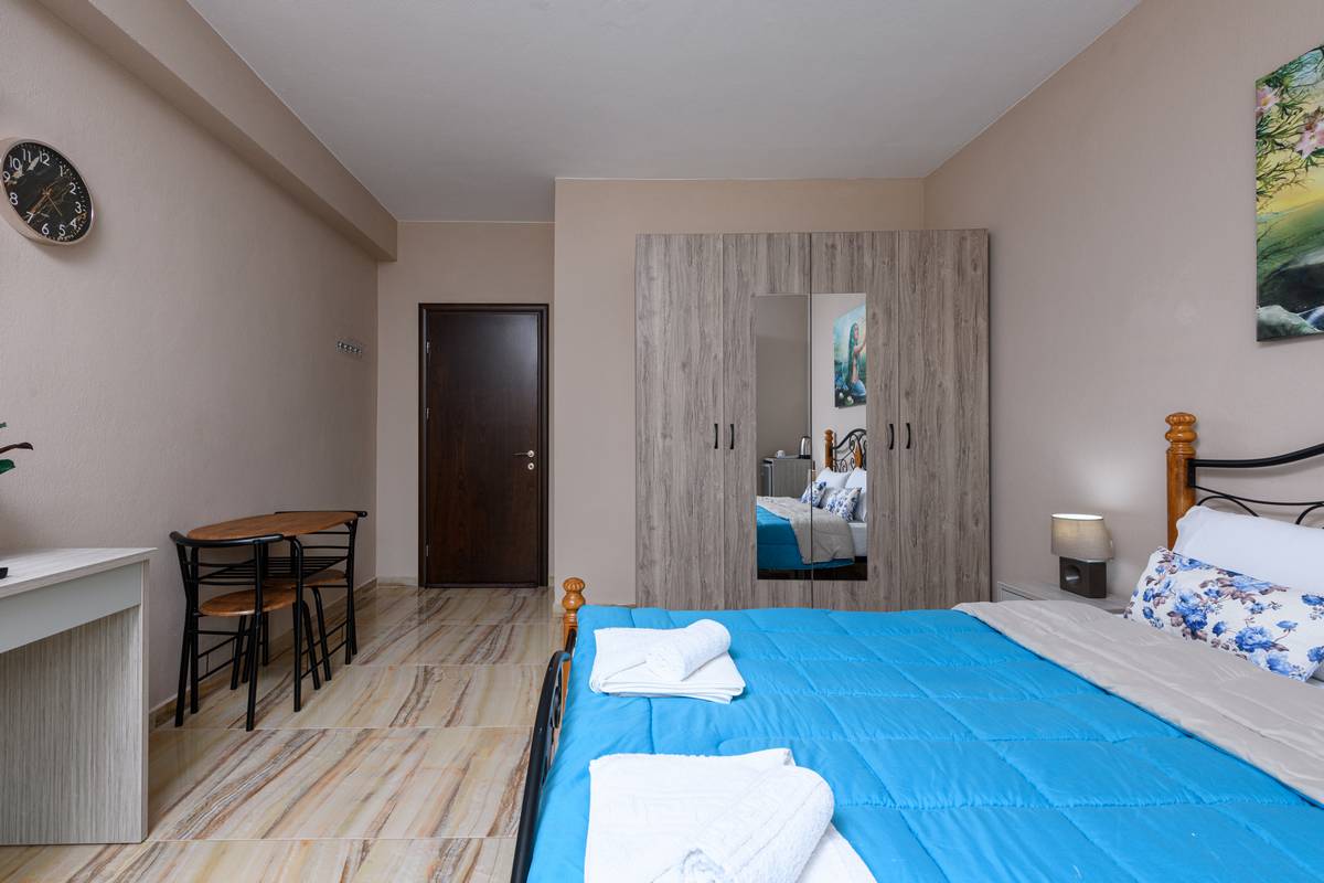 Studio at Villa Gorgona, perfect for couples or solo travelers. This well-appointed room features a cozy double bed, accommodating up to two guests, and a bathroom with a bathtub. Enjoy modern amenities including air conditioning, a television, fridge, and complimentary Wi-Fi. The private balcony offers a charming space for morning coffee or evening relaxation.